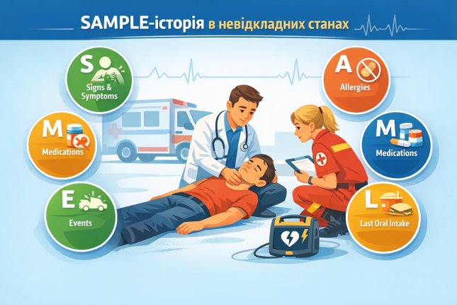 У невідкладних ситуаціях час і правильне прийняття рішень можуть визначити життя пацієнта. Одним із ключових інструментів для швидкої оцінки стану хворого є методика SAMPLE. Вона допомагає лікарю зібрати критично важливу інформацію про пацієнта навіть тоді, коли діагноз ще не встановлений, і дозволяє системно підходити до оцінки його стану.